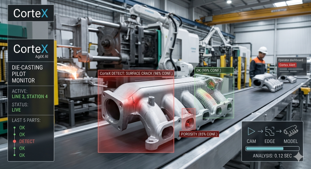 CorteX analyzes production images to detect surface defects early, helping foundries reduce scrap and launch pilots in weeks instead of months